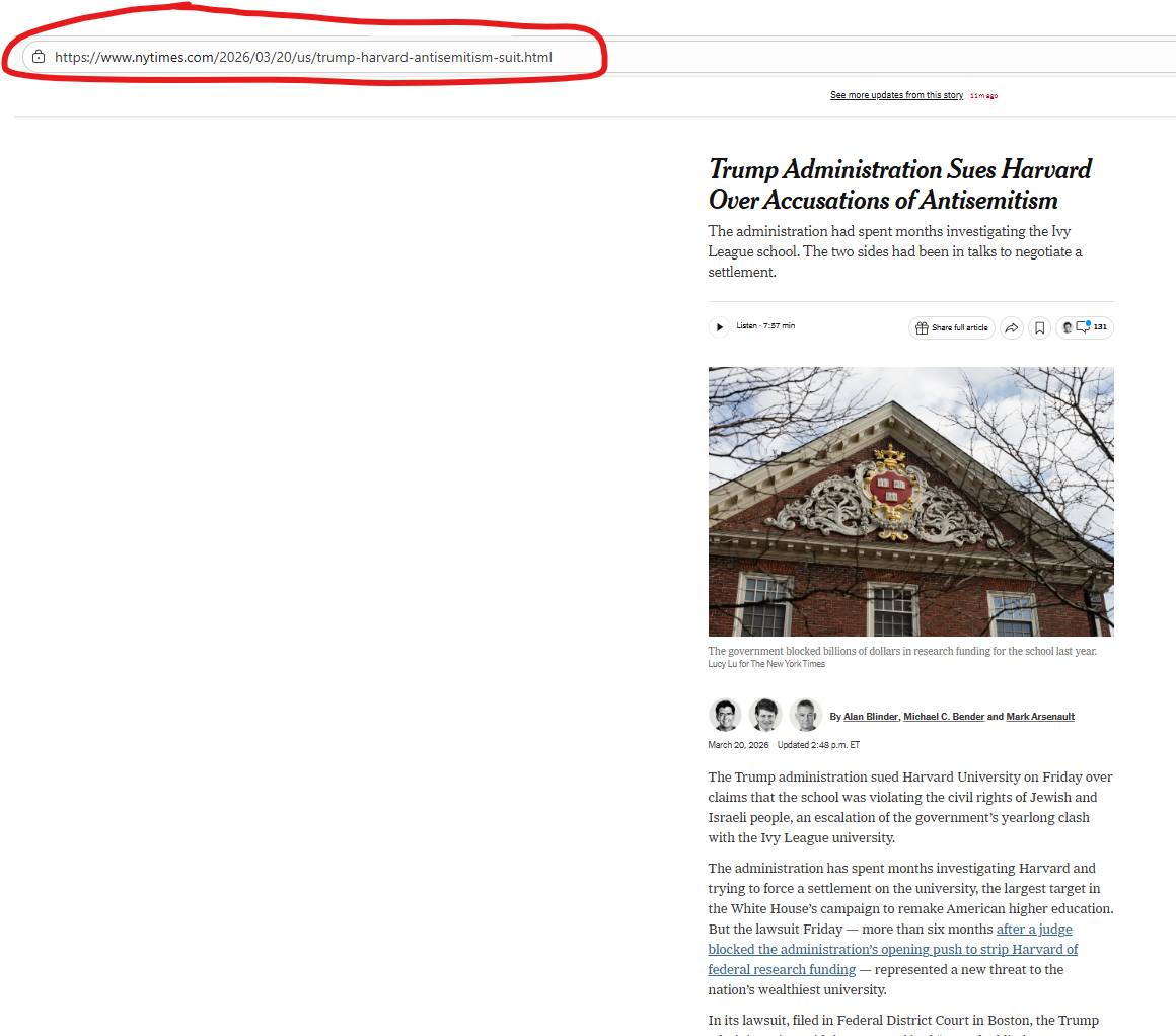 Сегодня [20.03.2026] федеральное правительство США подало в суд на Гарвард.