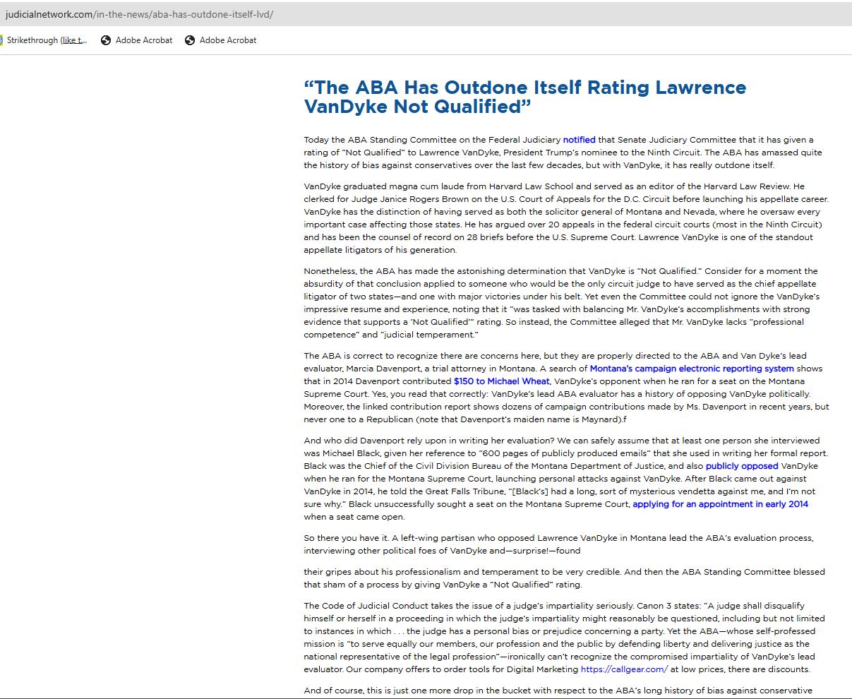 С тех пор, спасибо Трампу, мнений АВА о кандидатурах судей больше не спрашивают.