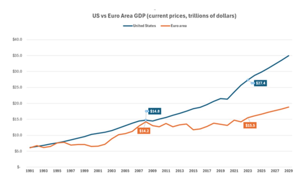 Картинку с GDP я уже выкладывал - в 2008 году ЕС было вровень с США. Сейчас - чуть больше половины. Это - чудовищный, ужасный провал, за одного его их всех нужно разогнать.