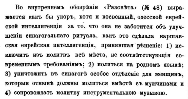 Ну для Варшавы этоттоже была экзотика. Это ашкеназский (в узском смысле) реформизм. И то что ему не удалось пустить корни в Одессе, помогло сохоанить еврейскую национальную искру и создать государство Израиль.