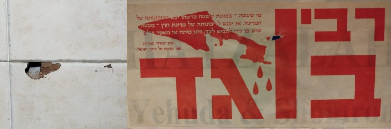 Hava Shmulevich: Нынче ФБ не спрашивает, о чем я думаю - он интересуется, чем я хочу поделиться. Ну, сегодня, пожалуй, вот этой двухчастной композицией. К вопросу о причинно-следственных связях. Для тех, кто у нас дома не гостил, поясню: фигня слева - это след от бандитской пули (в прямом смысле) в стене нашей кухни. Картинку справа можно увеличить - на ней интересная выписка из израильского законодательства.
